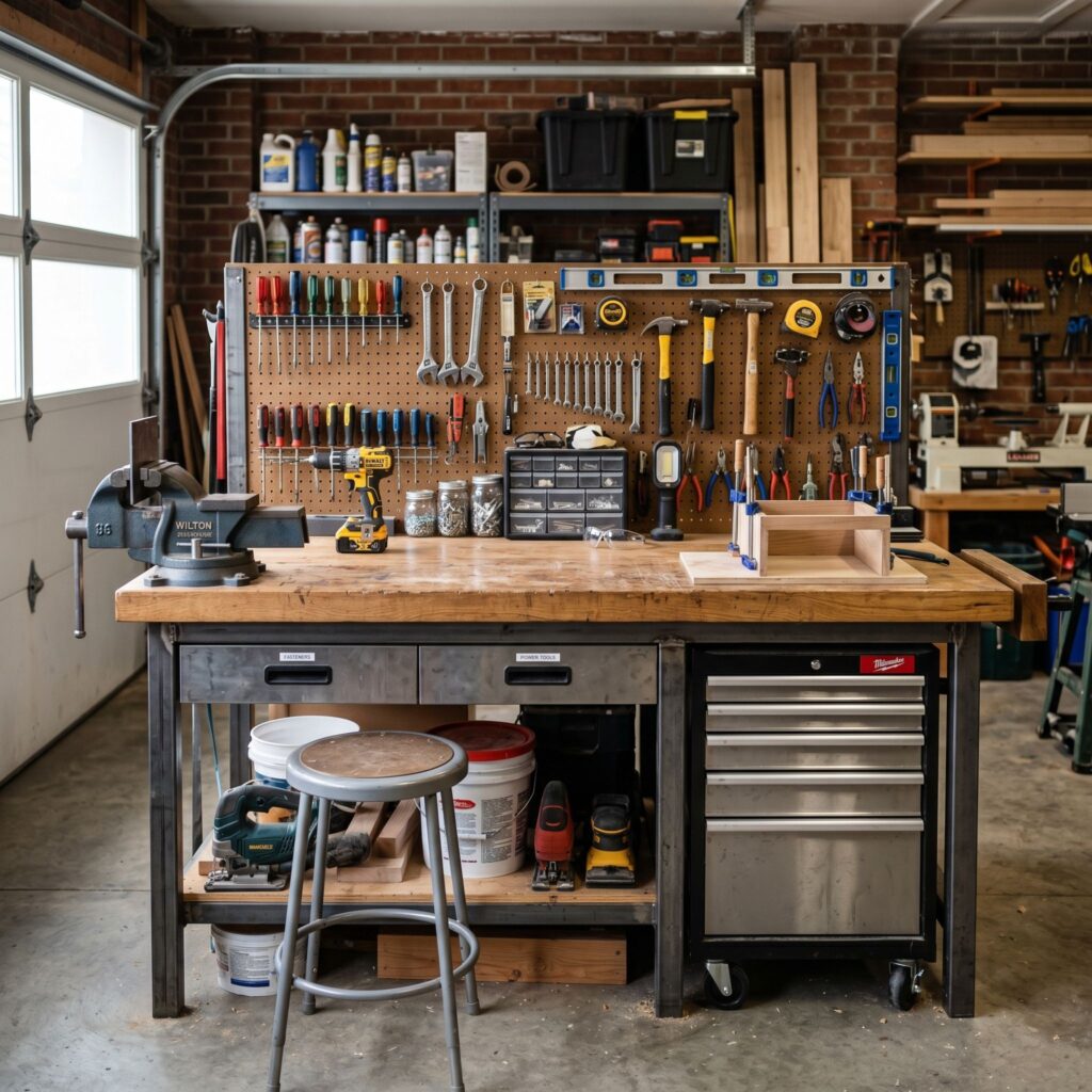 Tools scattered across the workbench, sockets rolling under the car, wrenches buried under a pile of rags — if this